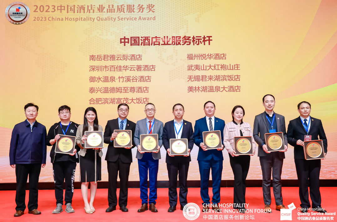 11月13-14日,第六届中国酒店服务创新论坛暨2023中国酒店业品质服务奖颁奖典礼在广州举办,此次活动由中国酒店论坛组织、酒店同期声传媒主办,多家省市行业协会、行业组织、酒店集团、品牌与单体酒店、旅游民宿、旅游院校、供应链企业等支持和参与。会上颁发了2023中国酒店业品质服务奖,以激励和表彰为“中国服务”的发展做出积极贡献和在“品质服务”方面做出卓越成绩的企业,天目湖旅游旗下御水温泉·竹溪谷酒店荣获“中国酒店业服务标杆”奖项。